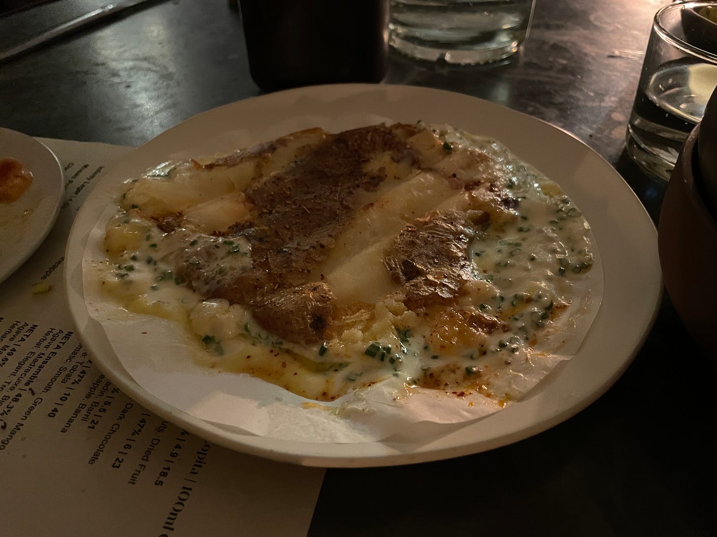 Sour cream and potato is unlikely to ever let you down, least of all when it is smashed flat and piled with chives and tajin (£6). Delicious. However, this dish has not come from research trips to Mexico, but straight from the menu of Miznon, London. Their ‘run-over’ potato is famed and clearly word has reached Bristol.