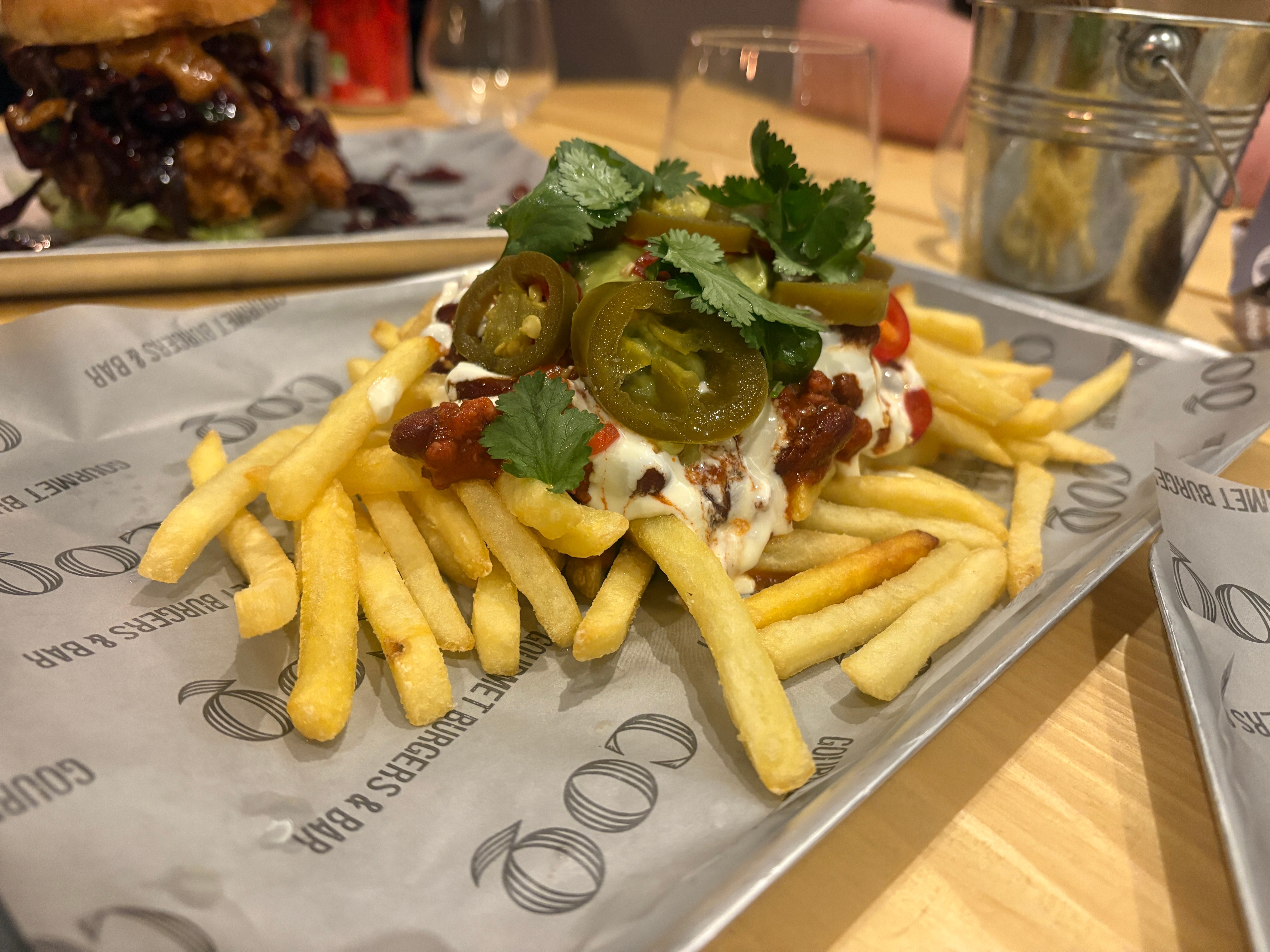 Now, hop on a brain plane and mentally transport yourself halfway across the globe to the home of another of the world’s greatest cuisines: Mexico. It’s so easy to eat spectacularly well in Mexico. You can get a taco on the side of the road for 50p that would laugh the socks off most Mexican restaurants in the UK. At Coq, inspiration has been drawn from Mexico in the form of Mexican loaded fries (£6.95), which are generously topped with the worst chilli con carne you’ll ever eat, sour cream, homemade guac, jalapeños and coriander. I think you mean coqriander! Surely you’re not going to let me eat my chips without trying to shove another coq down my throat?