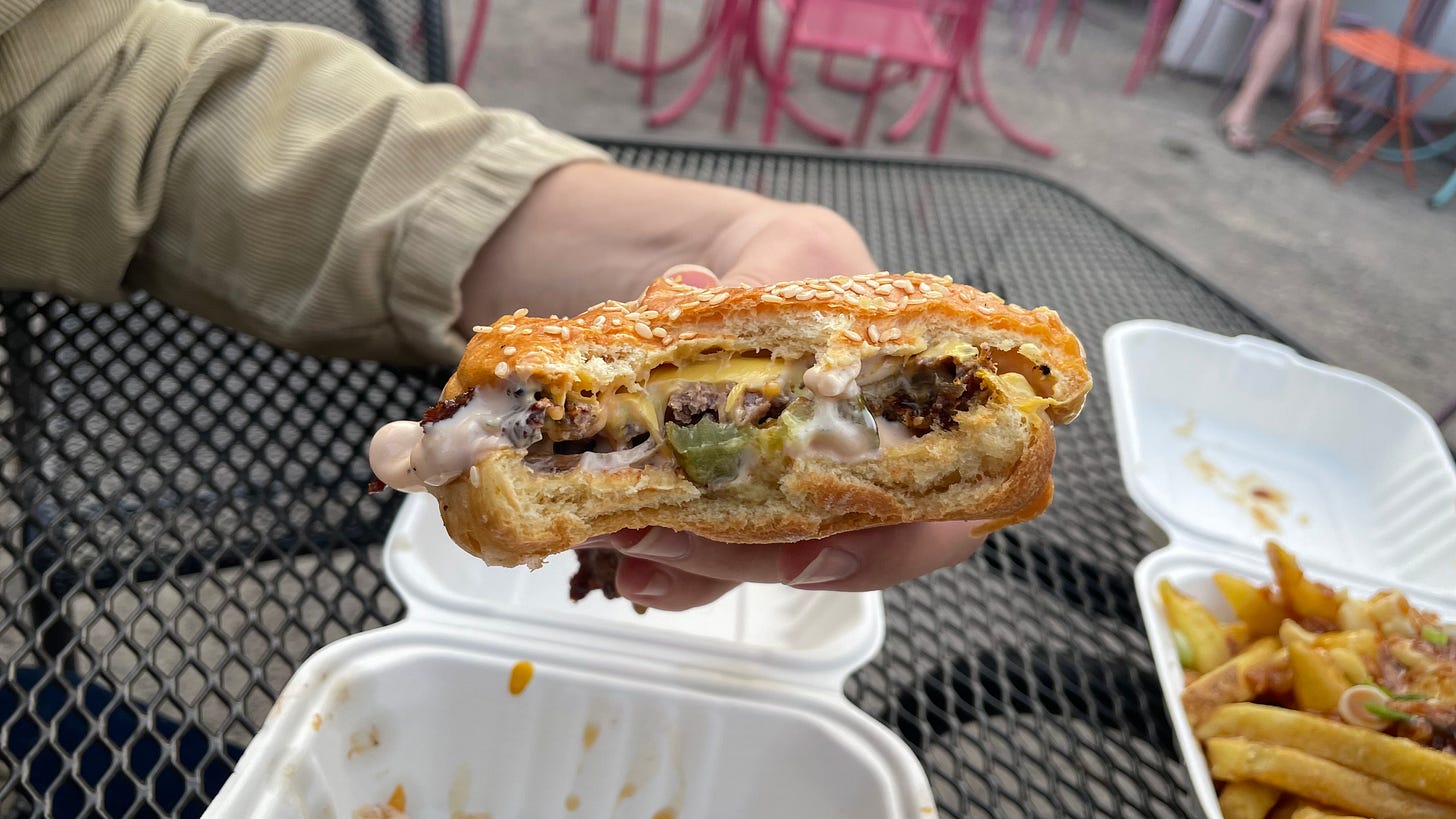 Yesterday was National Burger Day. I do hope that our recent burger bonanza gave you some inspiration in where to indulge on such a momentous occasion. When it comes to burgers, more often that not Danny’s is the one that I want. In fact, on these summer nights, there’s few things better than sitting al-fresco in the Fierce & Noble courtyard with a pint of the cold stuff and devouring a smash burger while dripping beefy grease through my fingers. You could say I’m hopelessly devoted. But rather than me continuing to wax lyrical about beef juices, I’ll hand you over to Caitlin for the real deal. And if you enjoy reviews like this landing in your inbox, don’t forget to hit subscribe — it helps us keep The Bristol Sauce sizzling.