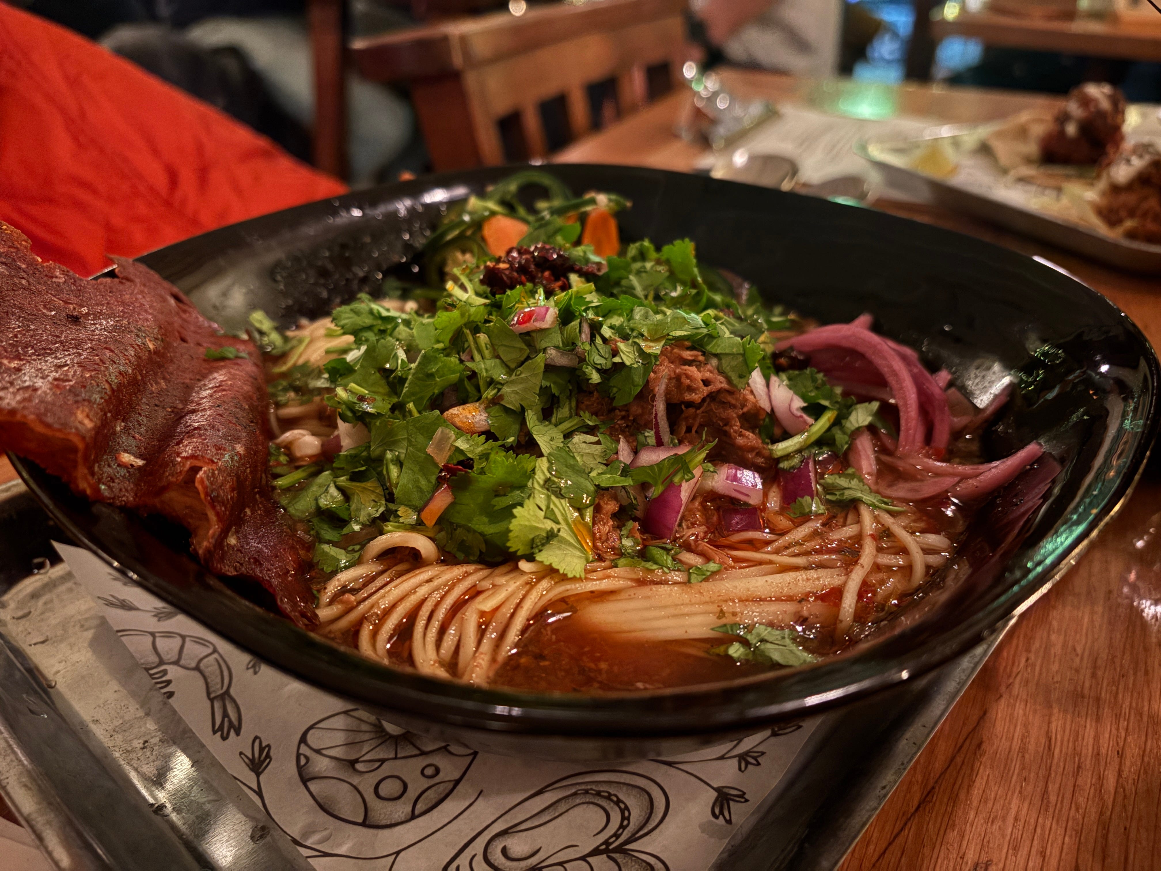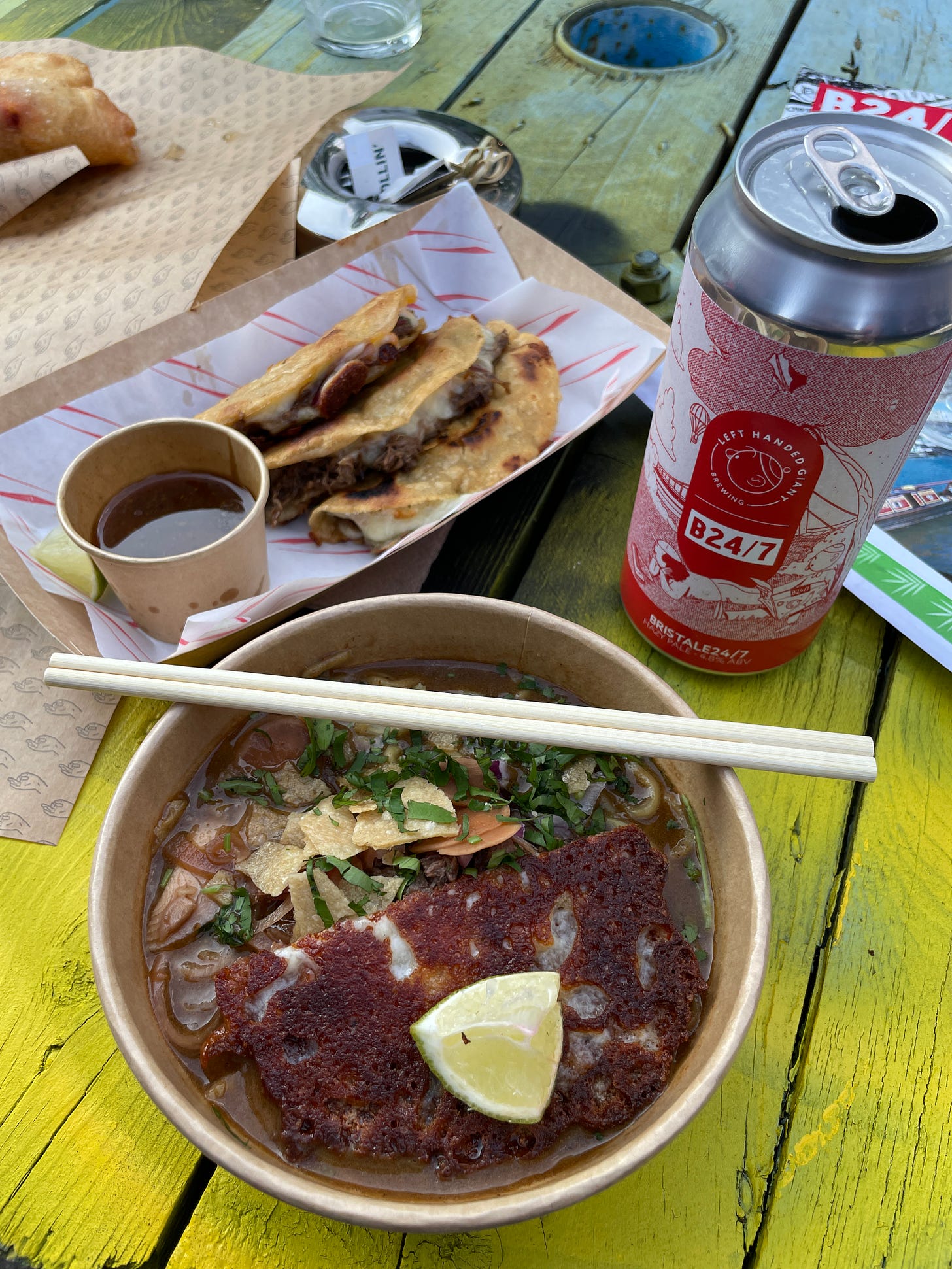 Back in Bristol I got to work. My then-employers Bristol24/7 had a food event coming up, and so I pitched a collaboration to Bristol’s ramen master — James from Tomo No Ramen — and Bristol’s birria kings — Gourmet Warriors. It’s one of the things I love so much about Bristol’s food scene: people almost always say yes, even to the most madcap of schemes. We got together to plot and test. The birria broth cut with Tomo’s house stock and a miso tare. Noodles made on site. A cheese crisp, fresh coriander, onion. A birria taco for dipping. It wasn’t perfect, but it was damn good. I said to both parties that they should continue the collaboration, but as so often happens in the busy and challenging hospitality industry — the less fun tasks are the ones to take priority.