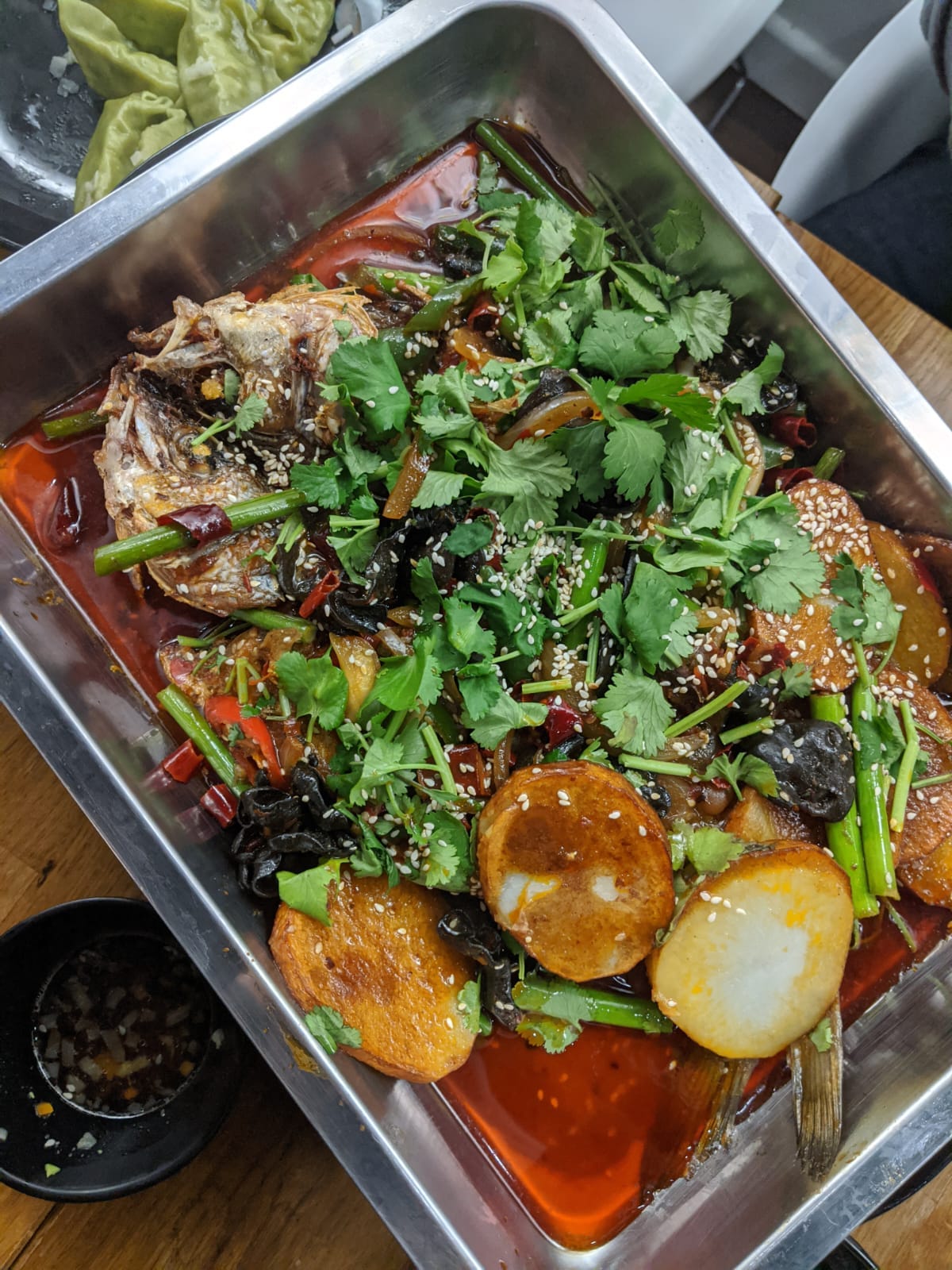 Back in the glory days of Pochettino it came surrounded by mostly coins of potato that determinedly held their shape as they softened soaked up the glorious melange of fish juices, oil and chilli, along with a few peanuts and some coriander for herbal freshness. It now comes under a heap of detritus including, but not limited to, cauliflower, tofu, lotus roots, spam and fish balls, in addition to everything else, which, to be Frank, seems to distract from a distinct lack of attacking football. I mean intensity. The broth now less brilliant scarlet, more gloomy ochre. Half of the dish’s title was conspicuous by its absence.