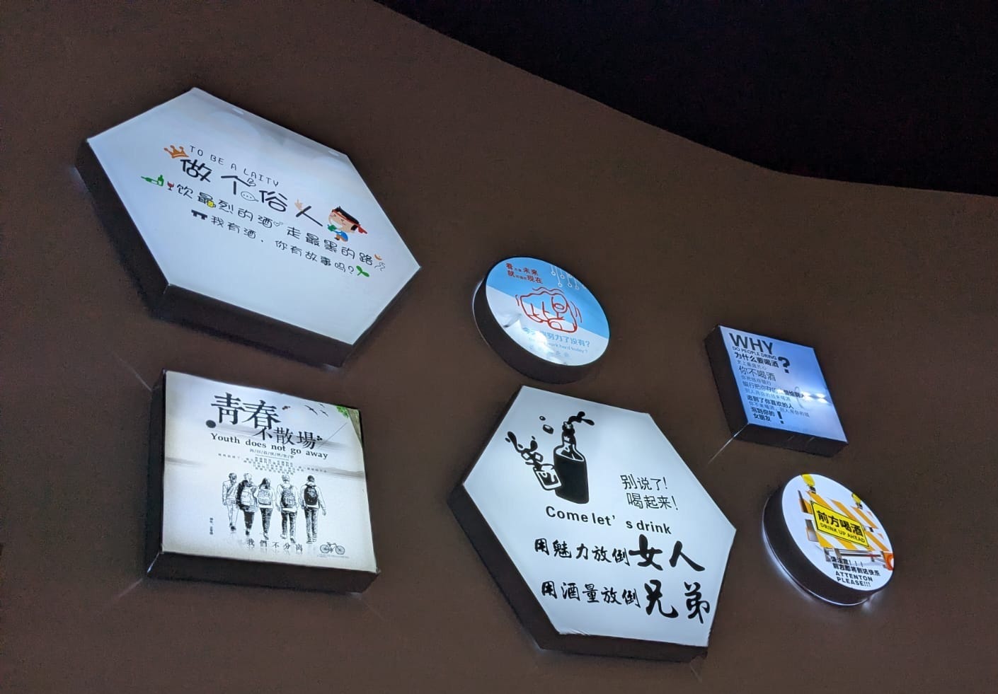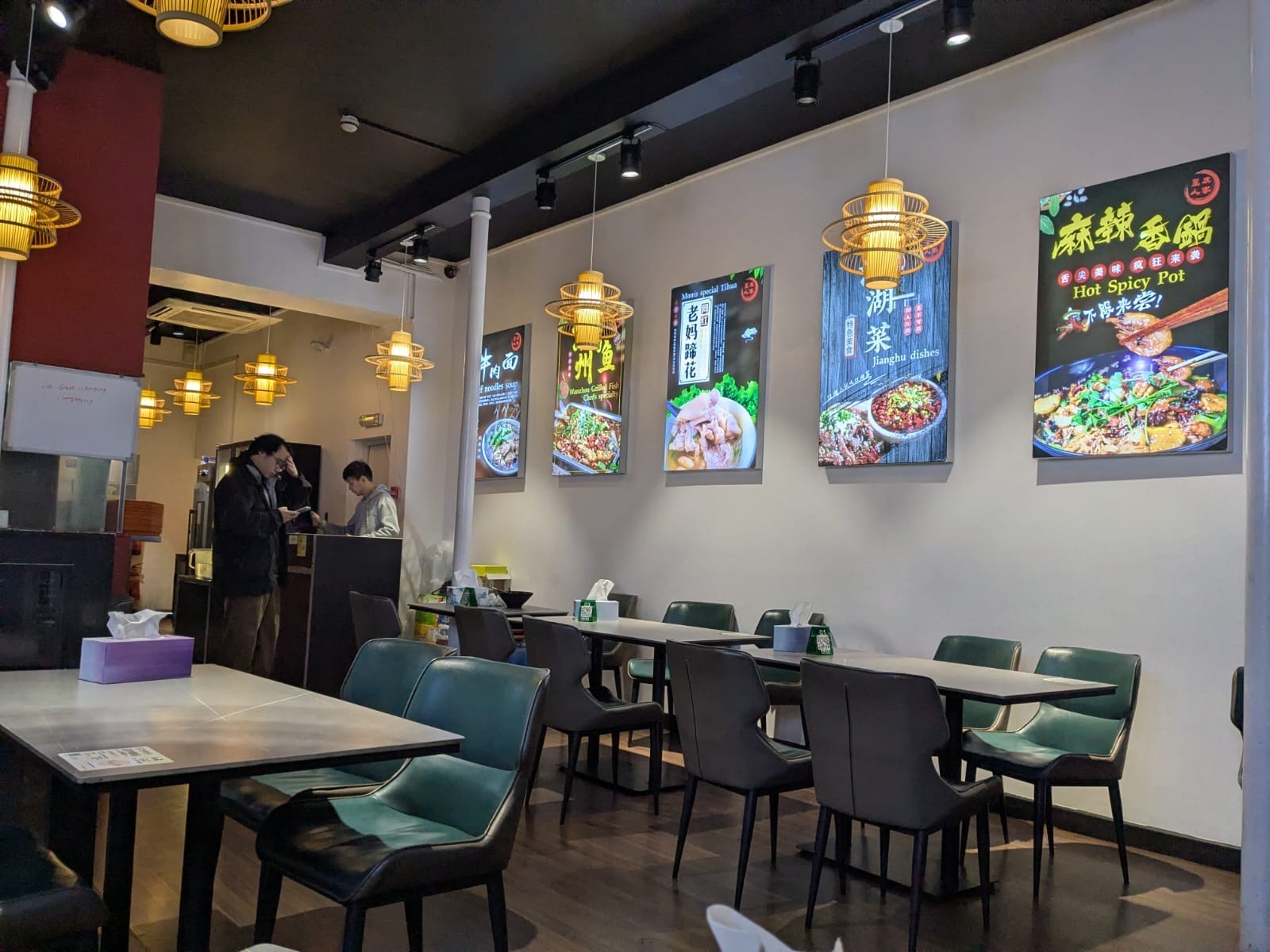I can’t remember exactly what we ate on that first visit years ago but there were certainly noodles, green beans and pork galore, with fistfuls of chilli and Sichuan peppercorns lobbed at everything in sight. The space was bare and utilitarian, with none of the kitsch… signage… currently adorning the walls, which treads a strange line between peer pressure and accusation (“Do you work hard today?”, “WHY (do people dring)?”).