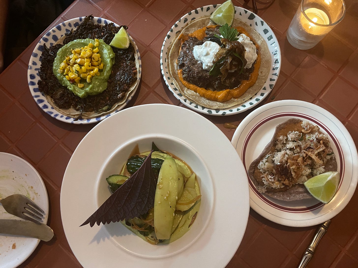 The other tostada was topped with a rare bavette (£12) which could have done with being sliced a little more delicately. Both the lamb taco (£11) and the mung bean taco (£10) rather heavily resembled burger patties, but both were a joy to eat and a testimony to High Dive’s commitment to innovating with Mexican flavours through a Los Angeles-tinted lens.