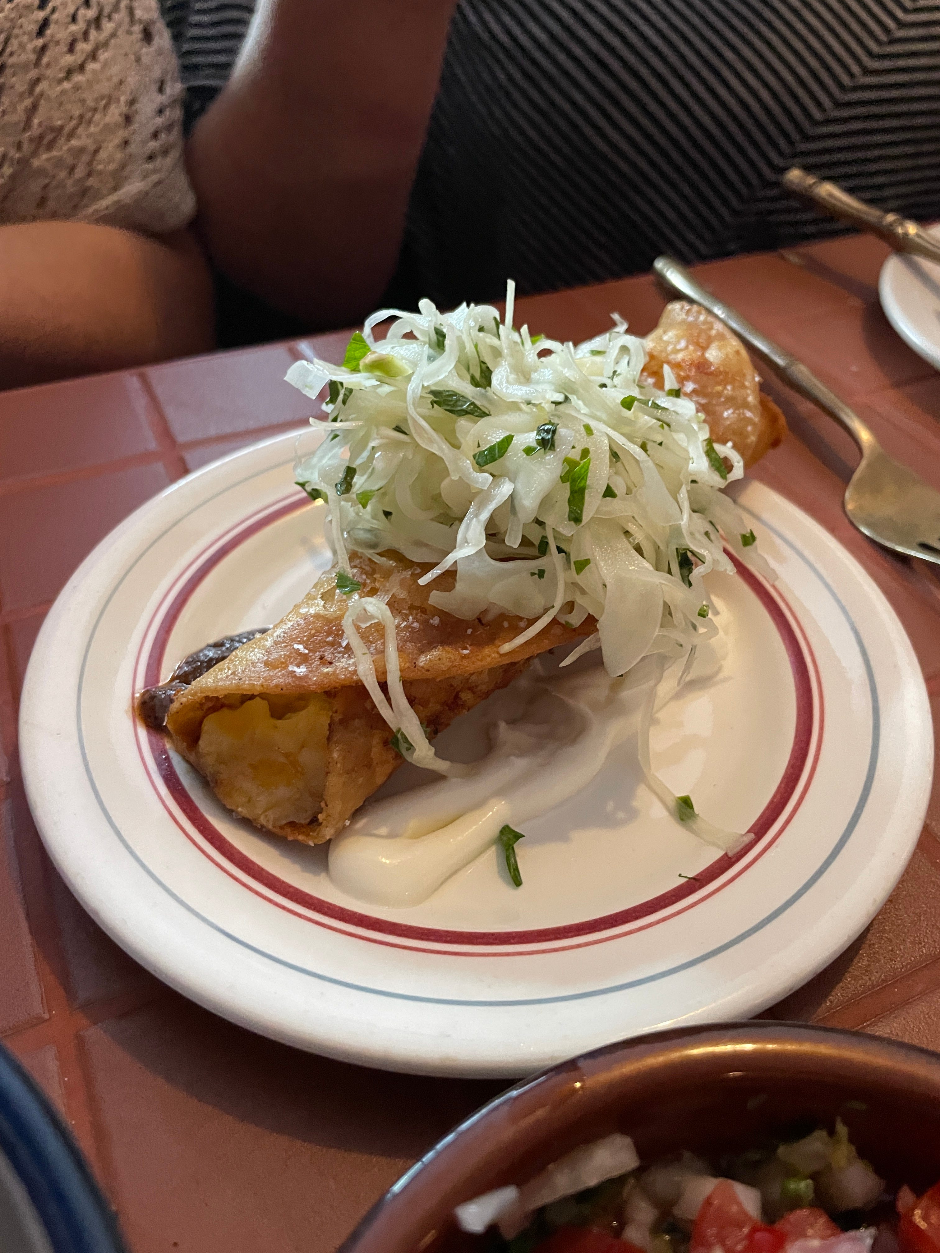 I discovered taquitos - cigar-like rolled crisp tacos - in Oaxaca earlier this year, but this was the first I’d had in the UK. Snacks don’t get much better than crisp tortilla filled with potato and cheese.