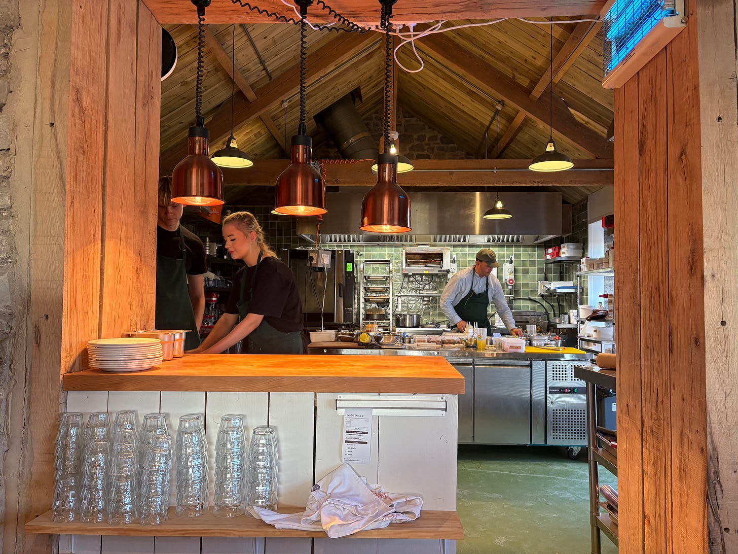 By now you’ll have realised Higher Farm — a few miles south of Shepton Mallet and somewhere you’ll definitely need Google Maps to find — is not your average restaurant. It is a relatively new endeavour from brothers Matteo and Giacomo Grasso, the first of whom I met — handsome and half-naked — in the sauna. Charming and thoroughly invested in the farm in more ways than one, I learned he made his money in London (of course) in finance (of course), before deciding he wanted a simpler life, eventually buying this not-so-little plot with his brother. Like a Gen Z Jeremy Clarkson — though hopefully less deportation-happy — with a frisson of Gary Stevenson.