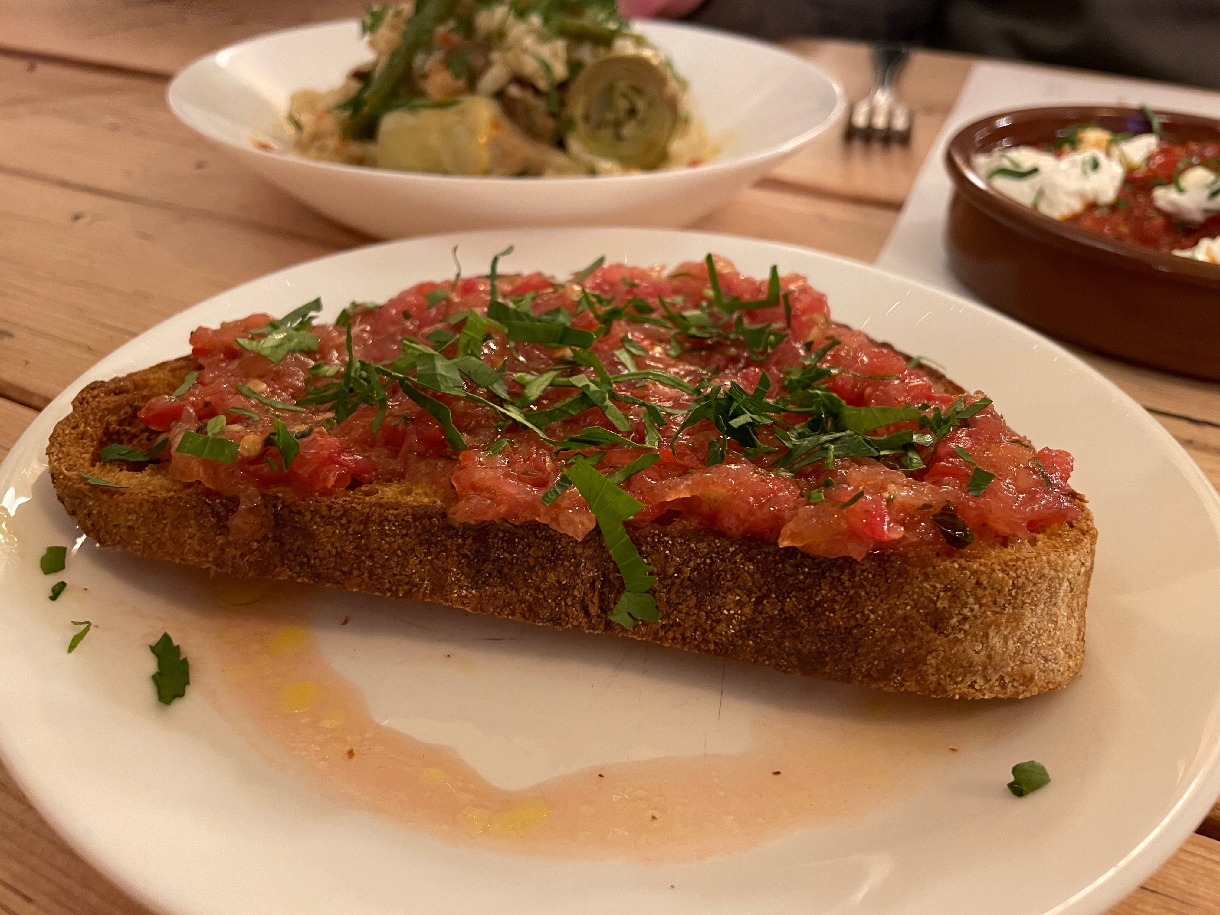 Sourdough, baked on site, with lashings of warm alioli (4 tapas dishes for £20) was as good a bread course as I’ve had anywhere. Whipped, smoked paprika-topped cod’s roe was also straight in the back of the net. And black truffle manchego is a long-standing feature on LSP’s menu for a reason, though it could have spent a minute or two longer in the fryer.