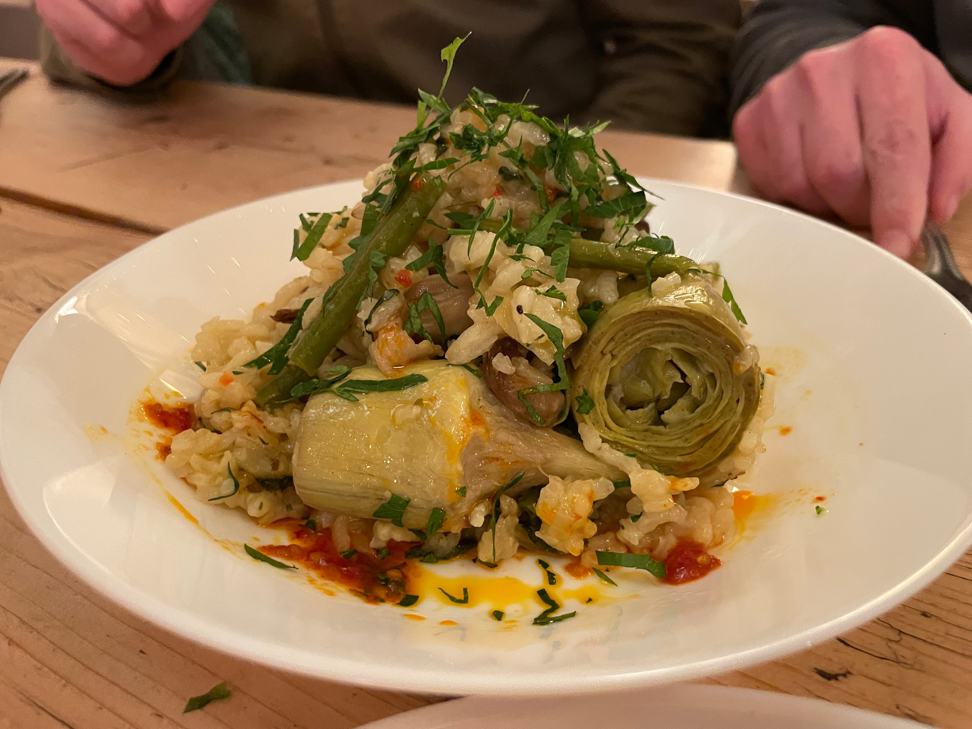 The veggie paella (£16.50) was an unexpected goal in the 90th minute; dense but not stodgy and with depth of flavour enough to rival the Mariana Trench. Though it was missing the crisp socarrat that a good paella should be proud of and also the fried egg that the menu promised.