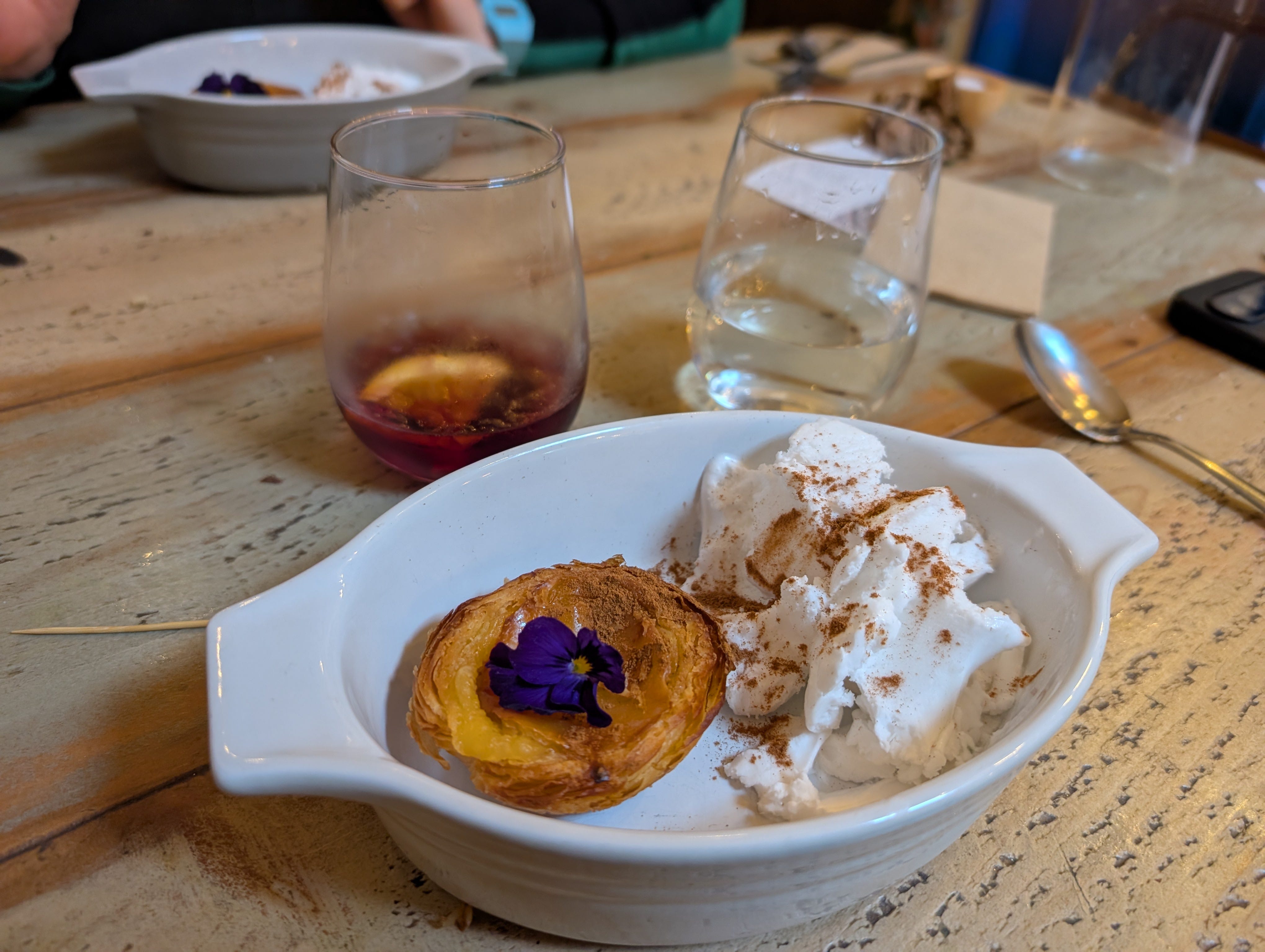 And, wow, do they do these well. If music is the food of love, these tarts might just be the fuel that keeps it burning. When dirty messages revolve around toddler potty training updates and after-dinner small talk means quibbling over dishwasher etiquette, rekindle a common passion with one of these irresistible treats. Crisp pastry and custard still warm from the oven, it’s all the more enjoyable for usually being off limits. The coconut ice cream, confides Gerda, was a happy mistake that arrived instead of the vanilla they ordered. Turns out they’re a match made in heaven.