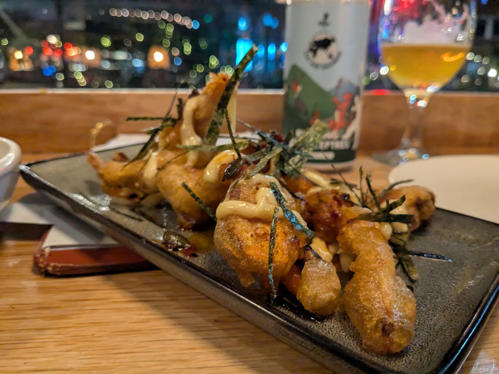 A bundle of deep-fried enoki had their inherent umami nature boosted by both caramelised yeast — surely ready to take the reins from miso — mayonnaise and a rubble of pumpkin seed XO, their slight rubberiness and scattering of seaweed giving ‘vegan takoyaki’ vibes, but the batter had absorbed too much oil. Close, but no devil’s cigar (it’s a type of mushroom, look it up).