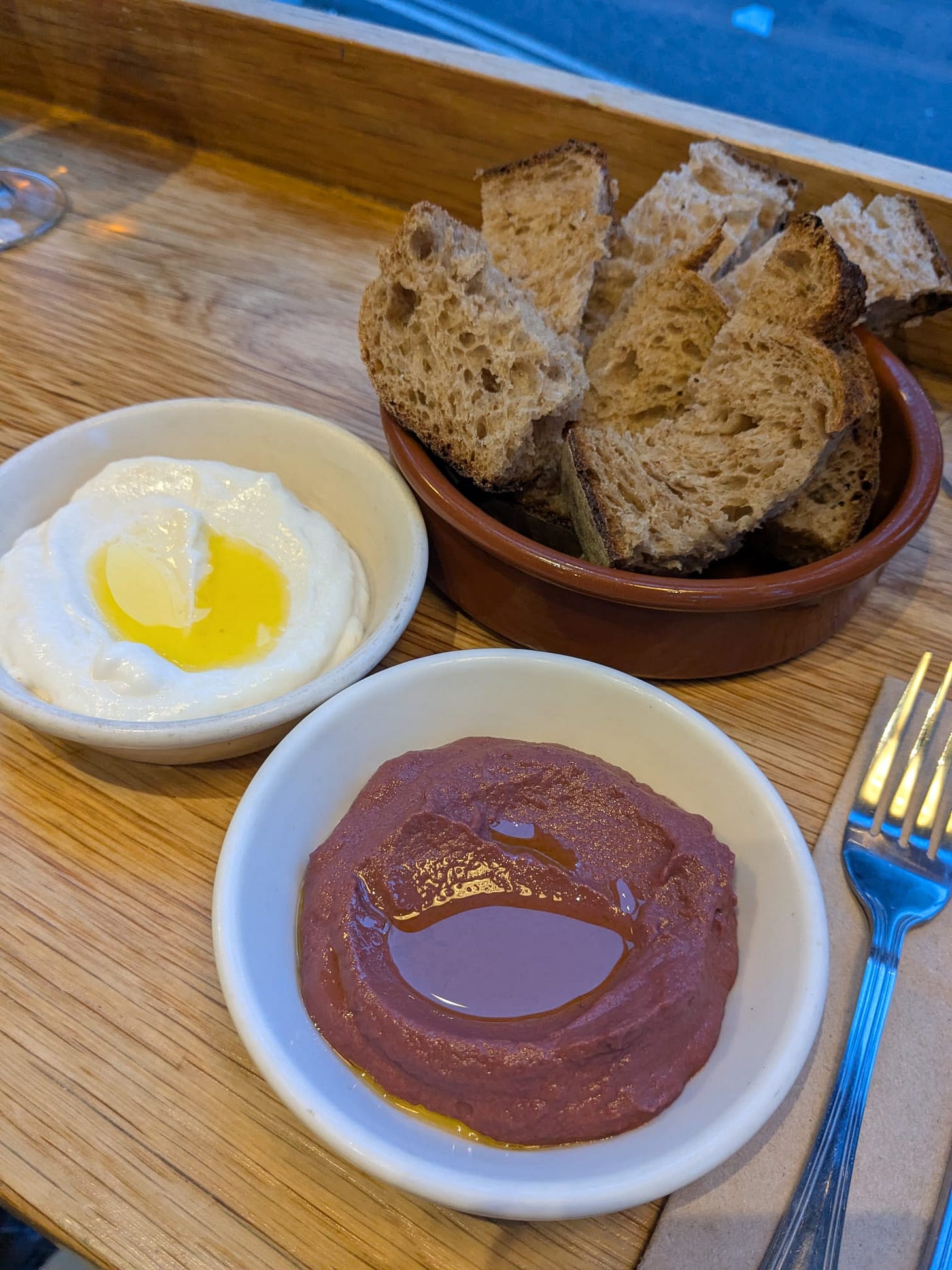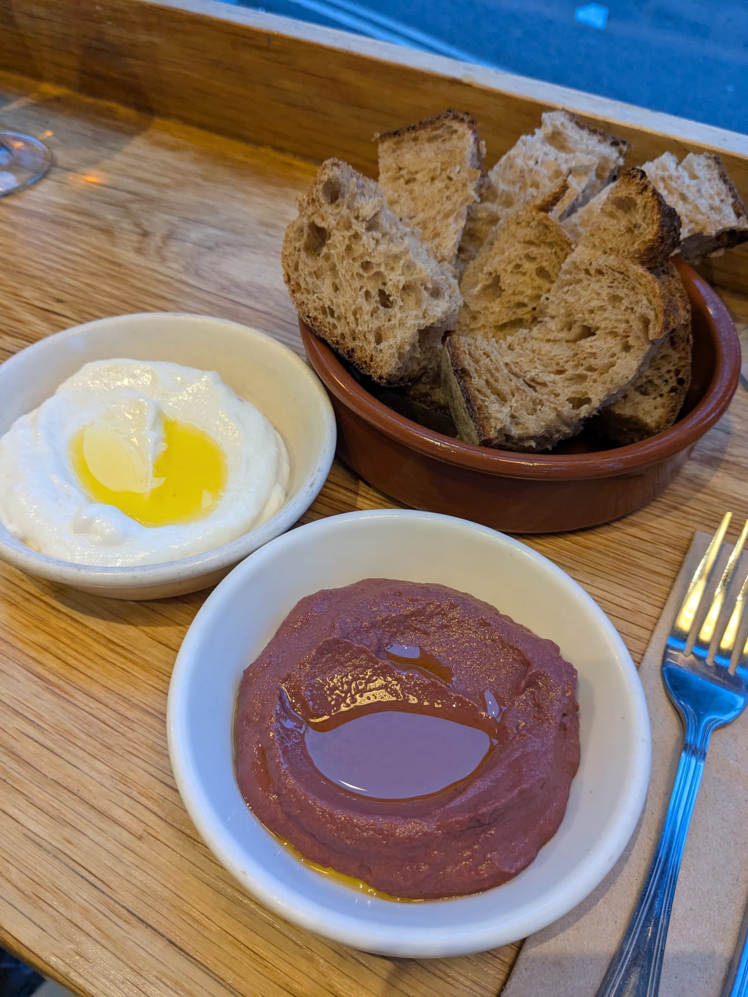 Kicking off, as any sane restaurant-goer does, with bread and butter, we ordered a couple of dips to mitigate the risk of poor butter to bread ratios. As it turns out, the butter didn’t arrive at all. We would have asked for some but getting the attention of the front of house team seemed to be as difficult as running with sceptres, coincidentally exactly what I was trying to order when the same issue resurfaced after we’d finished our first round without feeling suitably quenched. In a similar vein, menus were taken away after we’d ordered but a couple of snacks, turning the meal into some sort of impromptu memory exam.