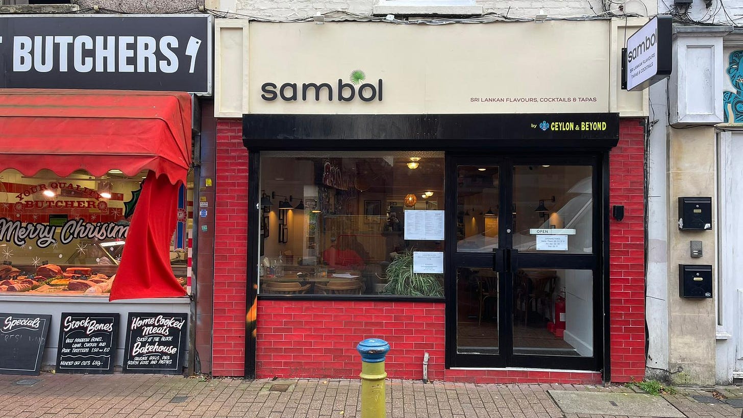 Apparently Sambol will be the renovating the kitchen in early January — so time your visit wisely. I land back in Bristol with a sharp slap to the senses when I reemerge onto the December pavement and immediately take to SkyScanner in search of cheap flights to Colombo.