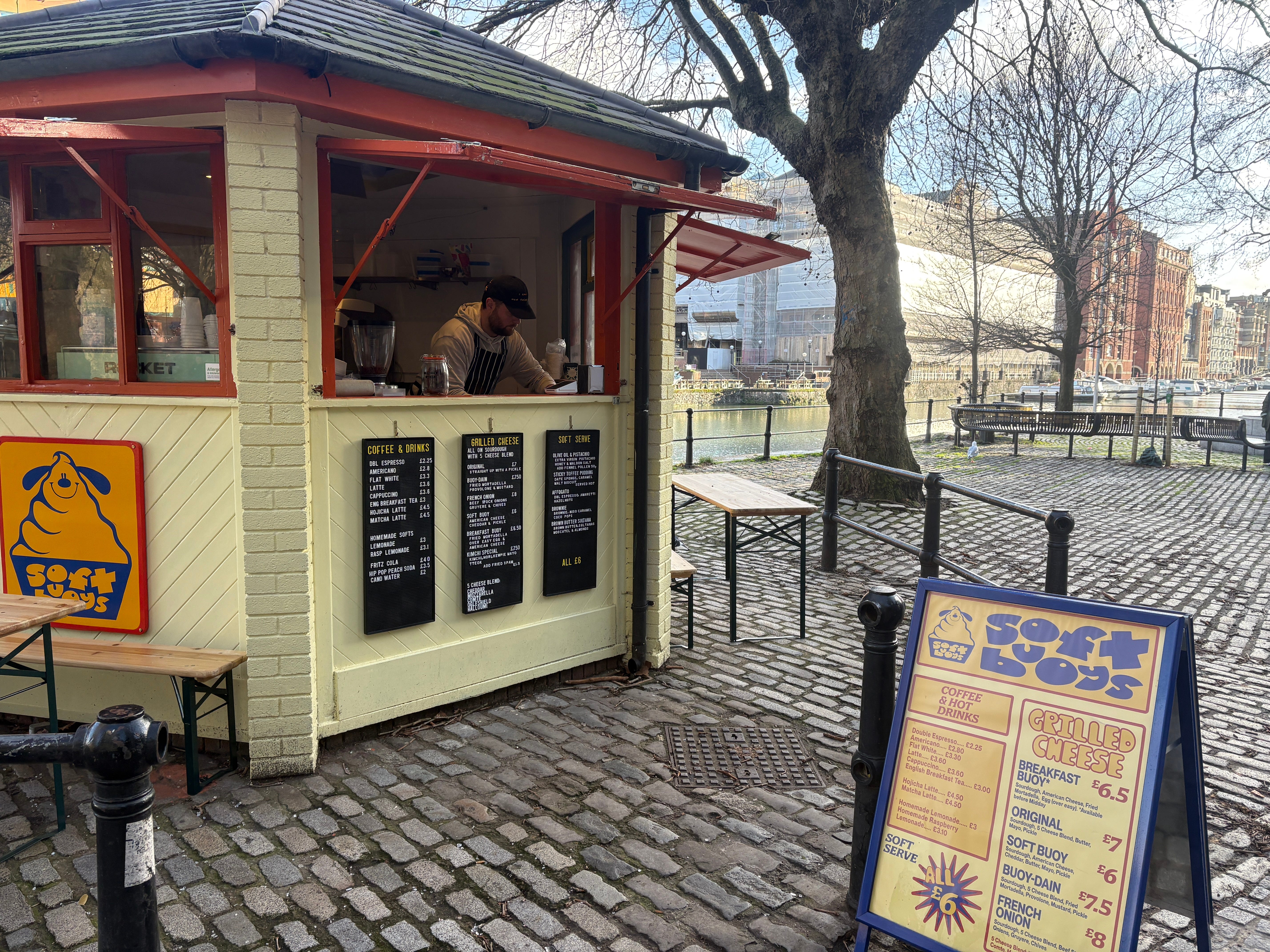 But their pronunciation of buoys is something I cannot overlook. Bow-ey. Bow-ey, for god’s sake. No I’m serious, have a listen for yourself. It was this nonsensical noise that we were ridiculing as we waited, hands tucked between knees for warmth, on a picnic bench next to the Soft Buoys shack on Welsh Back, with the occasional umami waft of grilling cheese turning us into a small pack of Pavlov’s dogs.