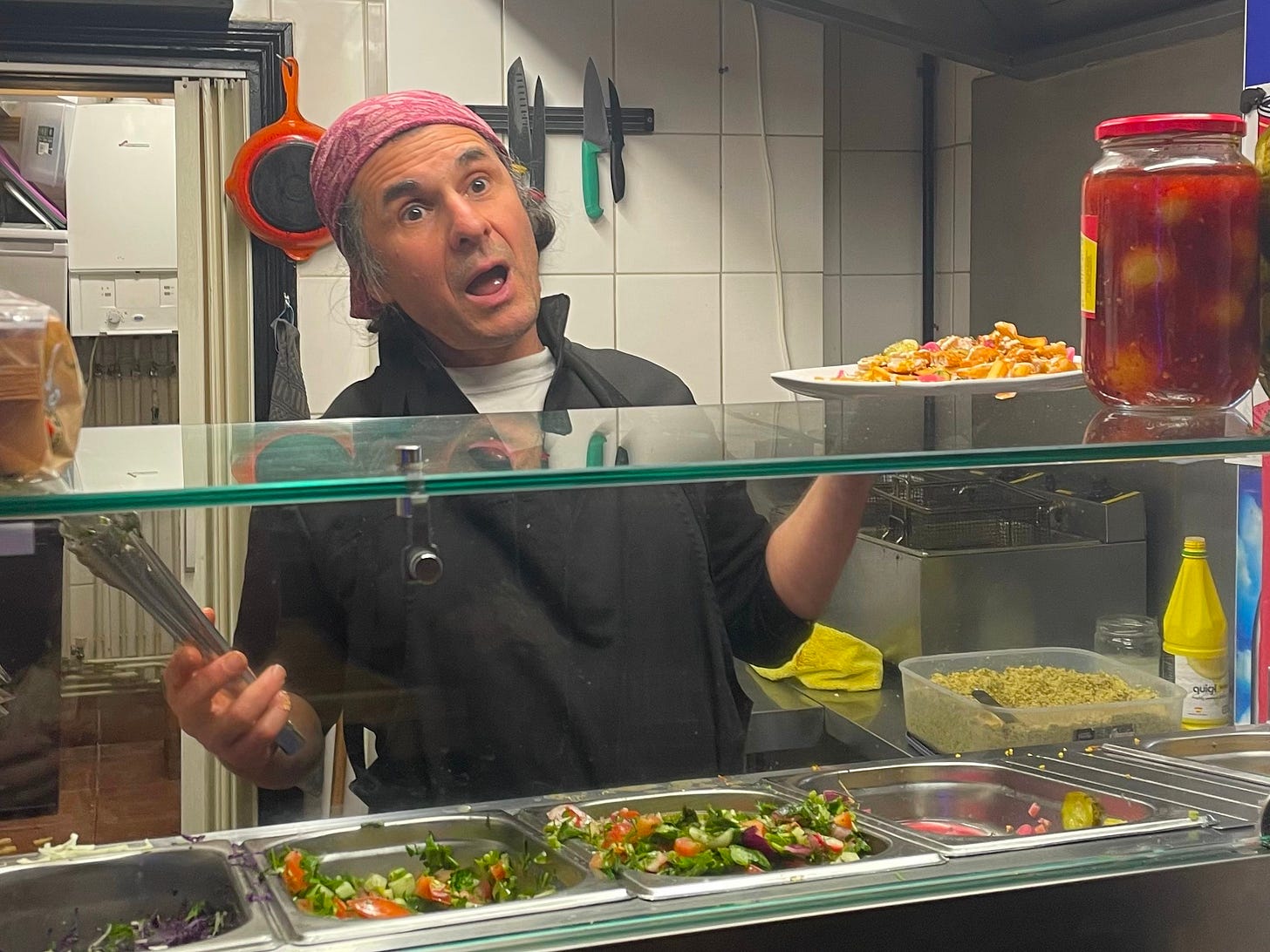 Pleasant experience, good grub, with a sprinkling of personality. The sort of place that reminds me, in a good way, of humanity. The polar opposite of the whole ghastly food charade you might come across nearer the middle of town. It is perfectly possible to have a conversation with the prop. while he prepares your freshly made coffee and wrap. Now how's that for a refreshing change!?