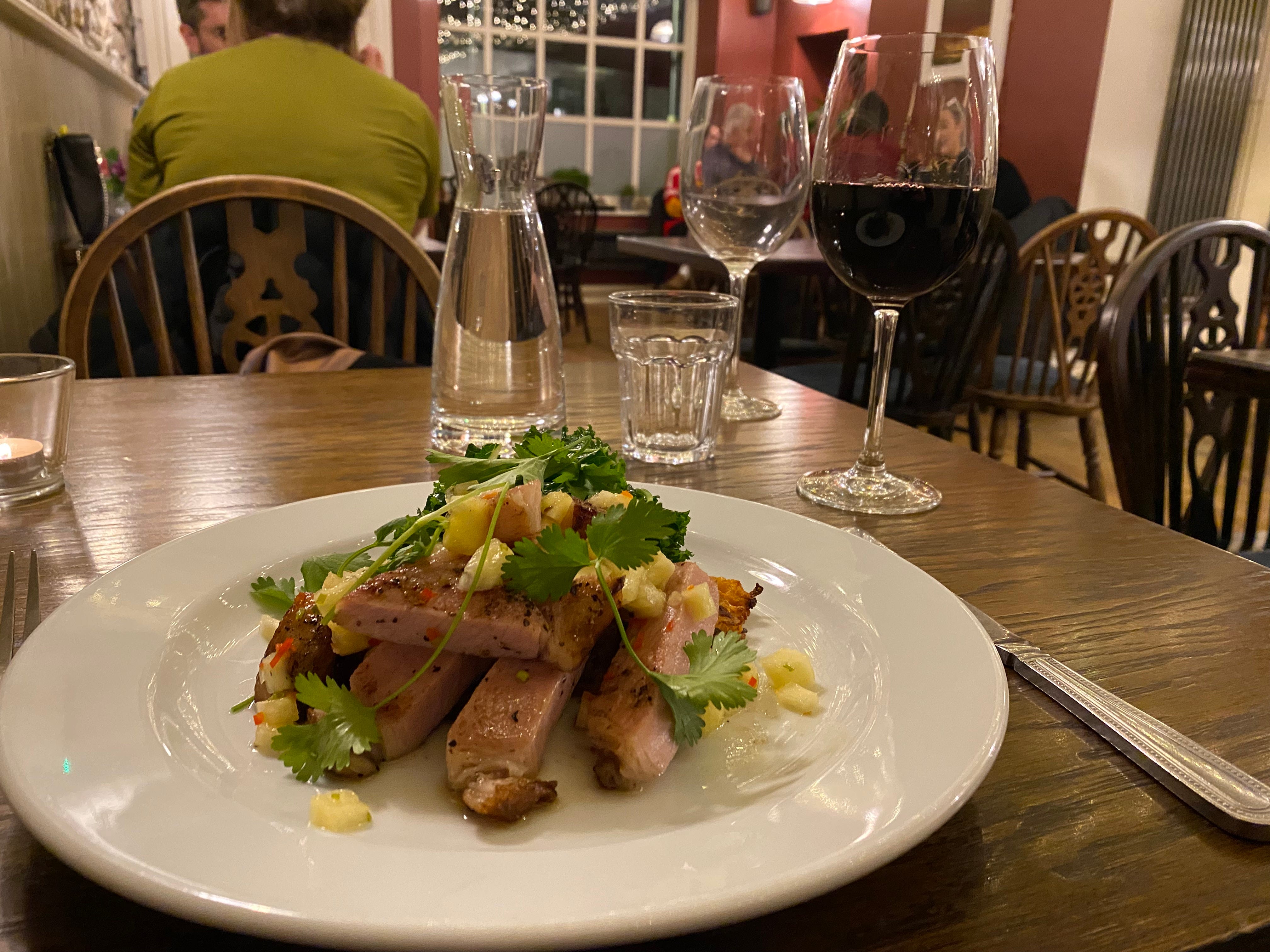 Was there something else? Oh yes, the food. Same story, basically. The Blaise’s menu fits the overall pattern of neat unassuming expertise. It’s roughly what used to be called Modern British featuring, in this case, interesting French flourishes. It’s a logical product of Louise McCrimmon’s background, which started in Leith’s London cooking school: the compendious and authoritative 1990s Prue Leith Bible, containing a wealth of European dishes, is still one of her key source books.