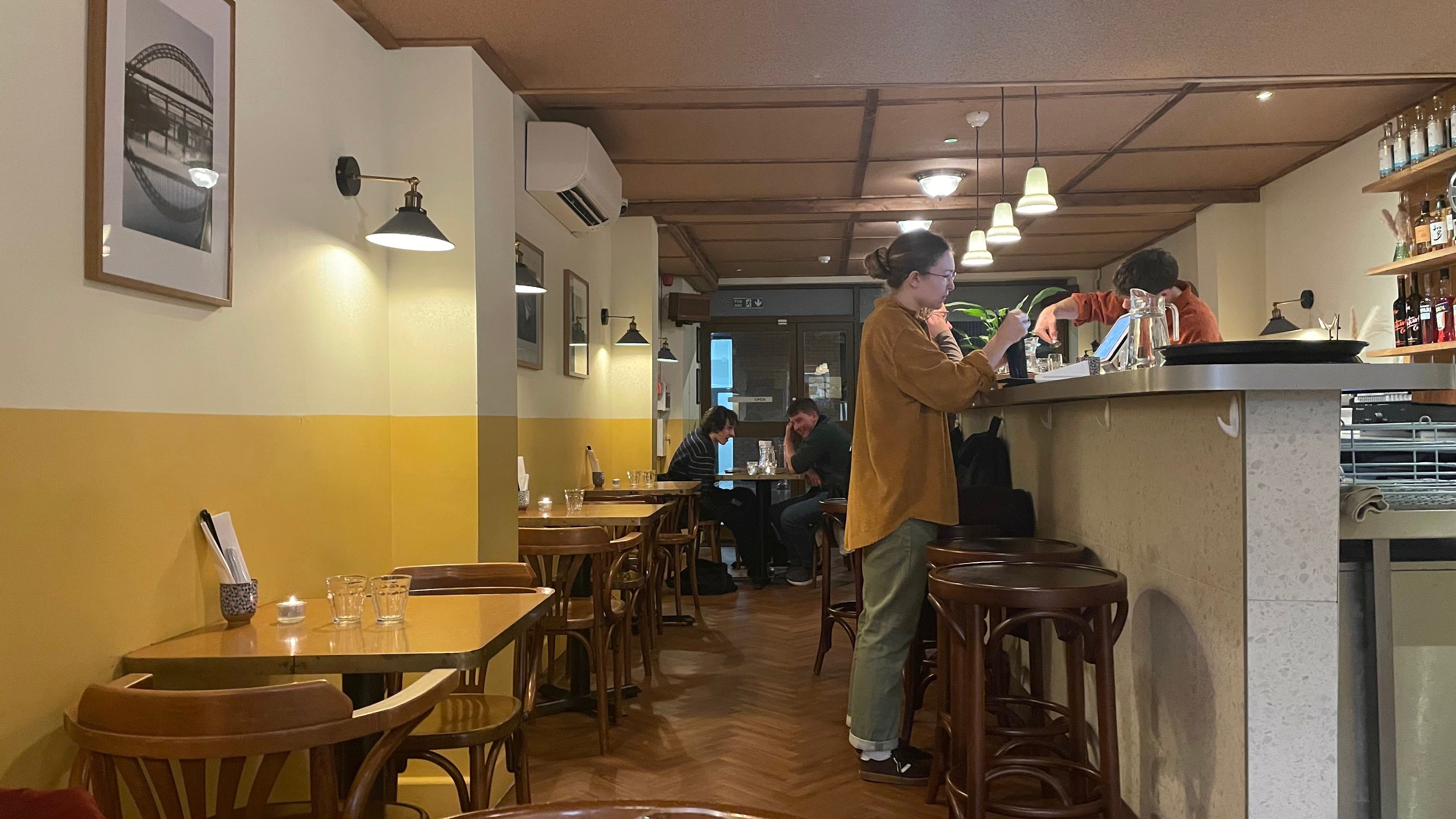 Before we can peruse the dessert menu, a sheepish, cord-wearing waiter (they all wear cord here*) comes over to tell us he needs the table back and could we possibly move to the bar. While it’s wonderful to hear of a restaurant being so popular, it’s less enjoyable to tuck into the final course when only 2/3 of the party has a barstool.