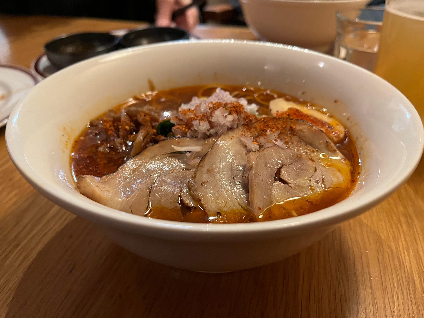 Back to the ramen. The broth? Silky. The meat? Succulent. The noodles? Chewy. The egg? Jammy. The pork fat? Buoyant. I never wanted to stop eating it, so precisely had the chef hit the bliss point. I wish was I was still slurping it down now, 18 months later. I’m convinced it cured me of the cold I was coming down with at the time.